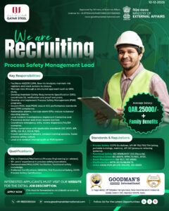 The Process Safety Management Lead is responsible for developing, implementing, and governing Qatar Steel’s Process Safety (PSM) systems across all facilities. The role ensures safe and compliant operations through structured risk assessments, PHA/LOPA facilitation, MOC governance, SIL verification, alarm management, and emergency preparedness. The position provides leadership, technical expertise, and coaching to operations teams to continuously strengthen the company’s safety culture.